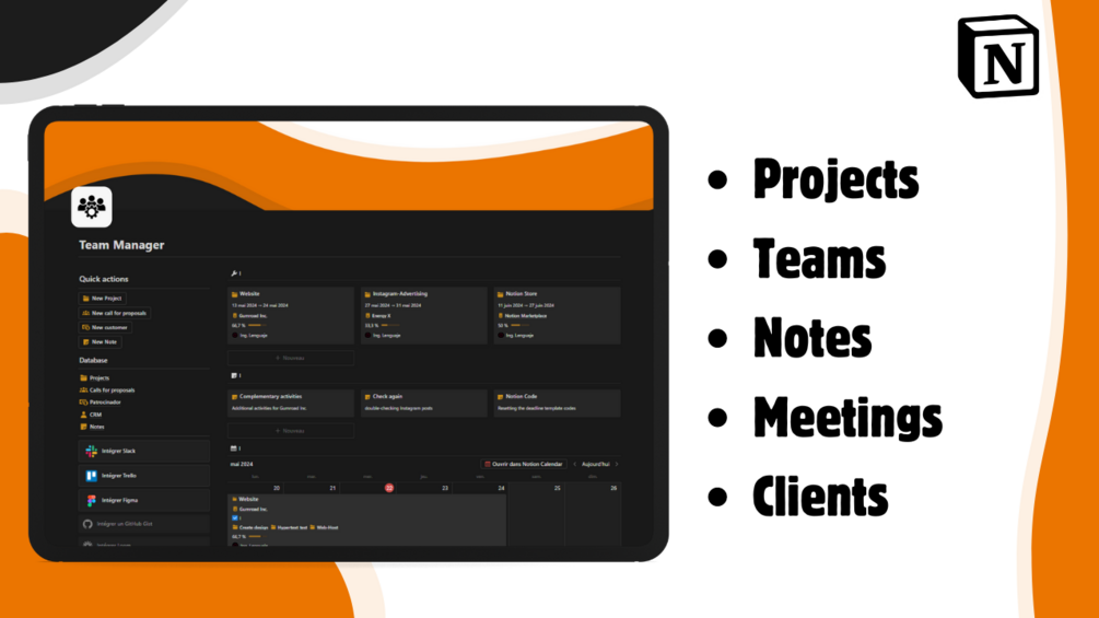 Integrated Project Management: With our template, you can have a clear view of all ongoing projects. From inception to delivery, you will be able to assign tasks, set deadlines and track progress, ensuring the timely and successful completion of each project.